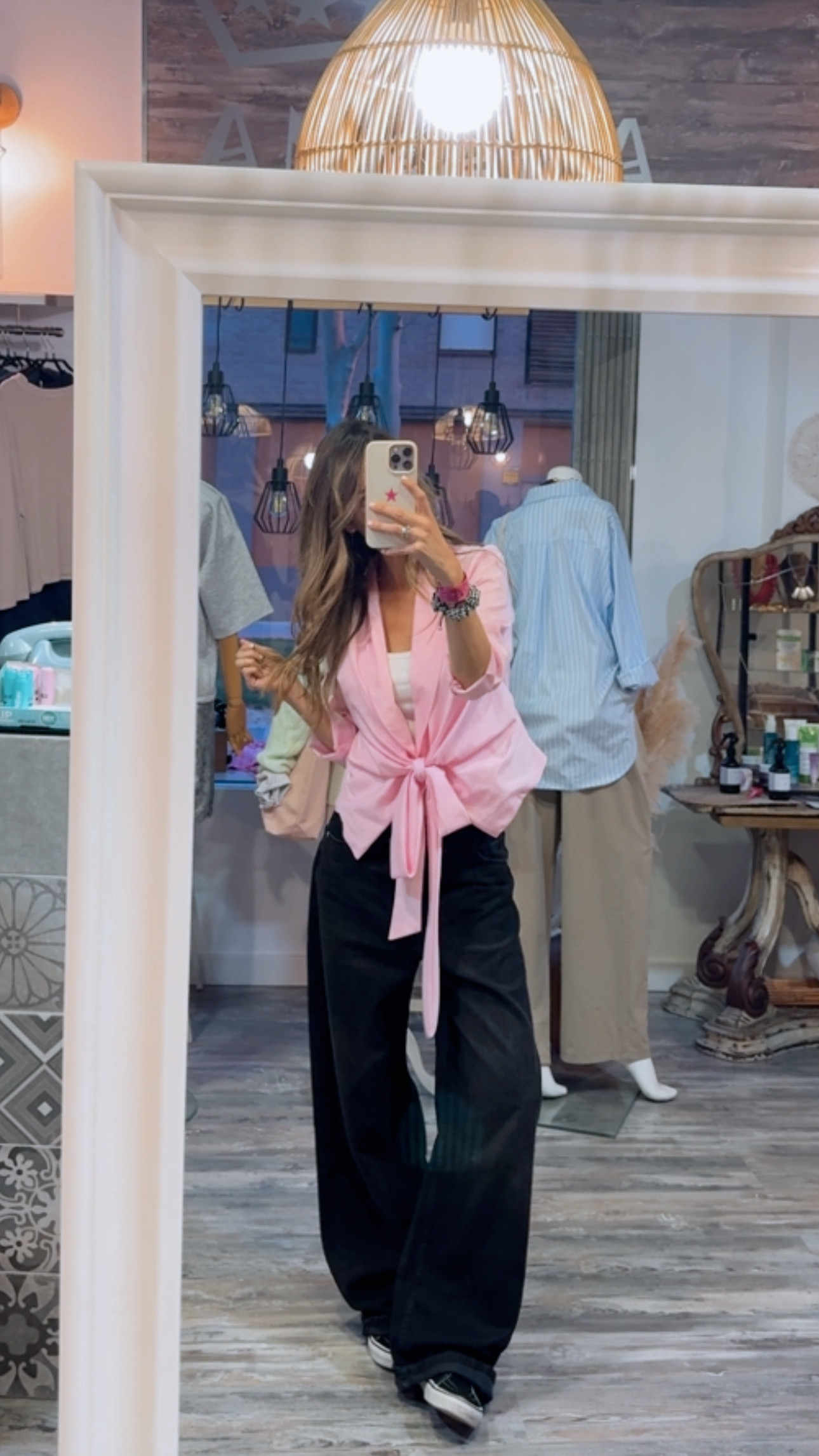 Tiene una cinta del mismo tejido que permite ajustar la prenda de distintas maneras: atada en el lateral, en la parte interior o en la espalda, adaptando el ajuste