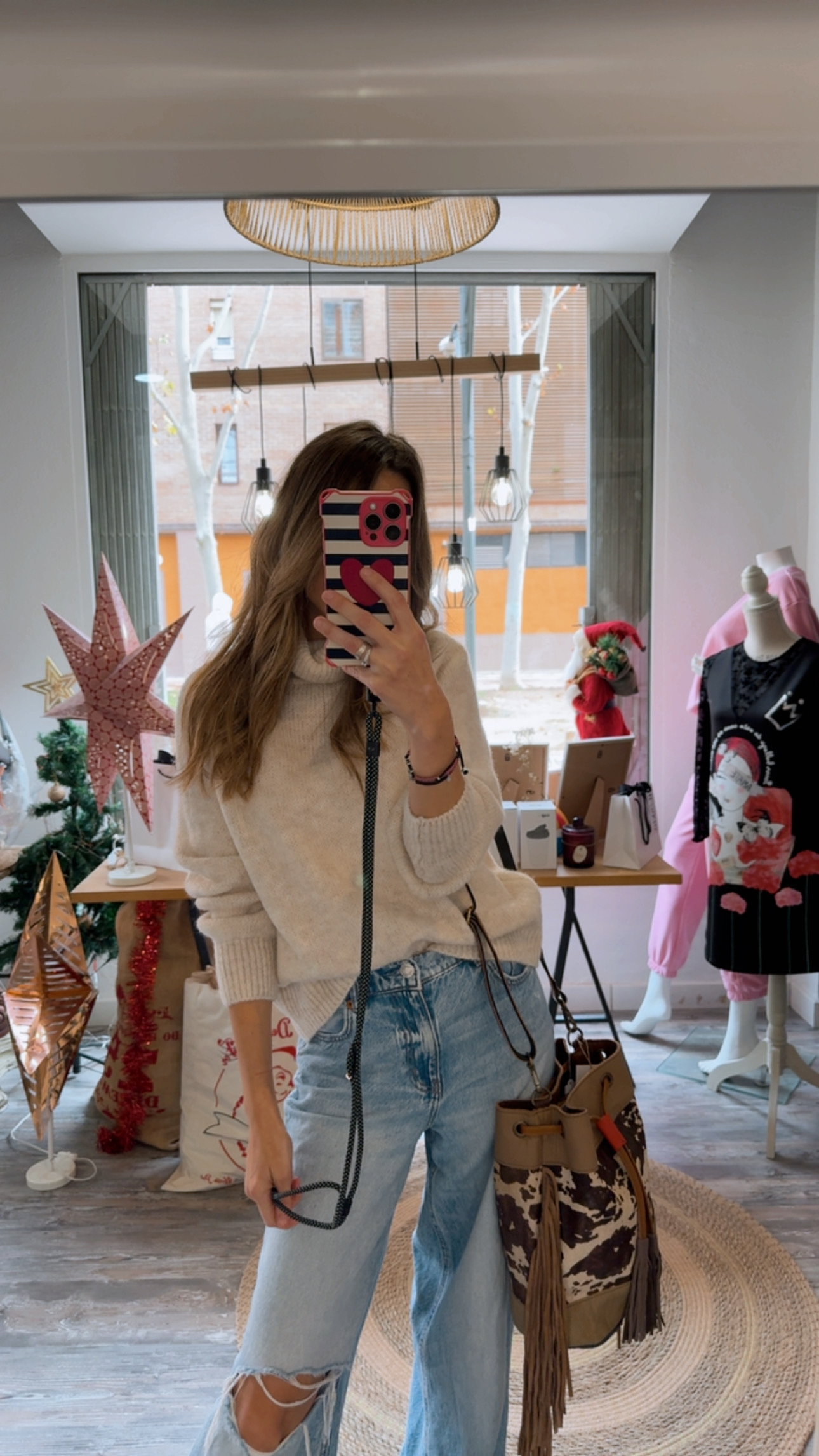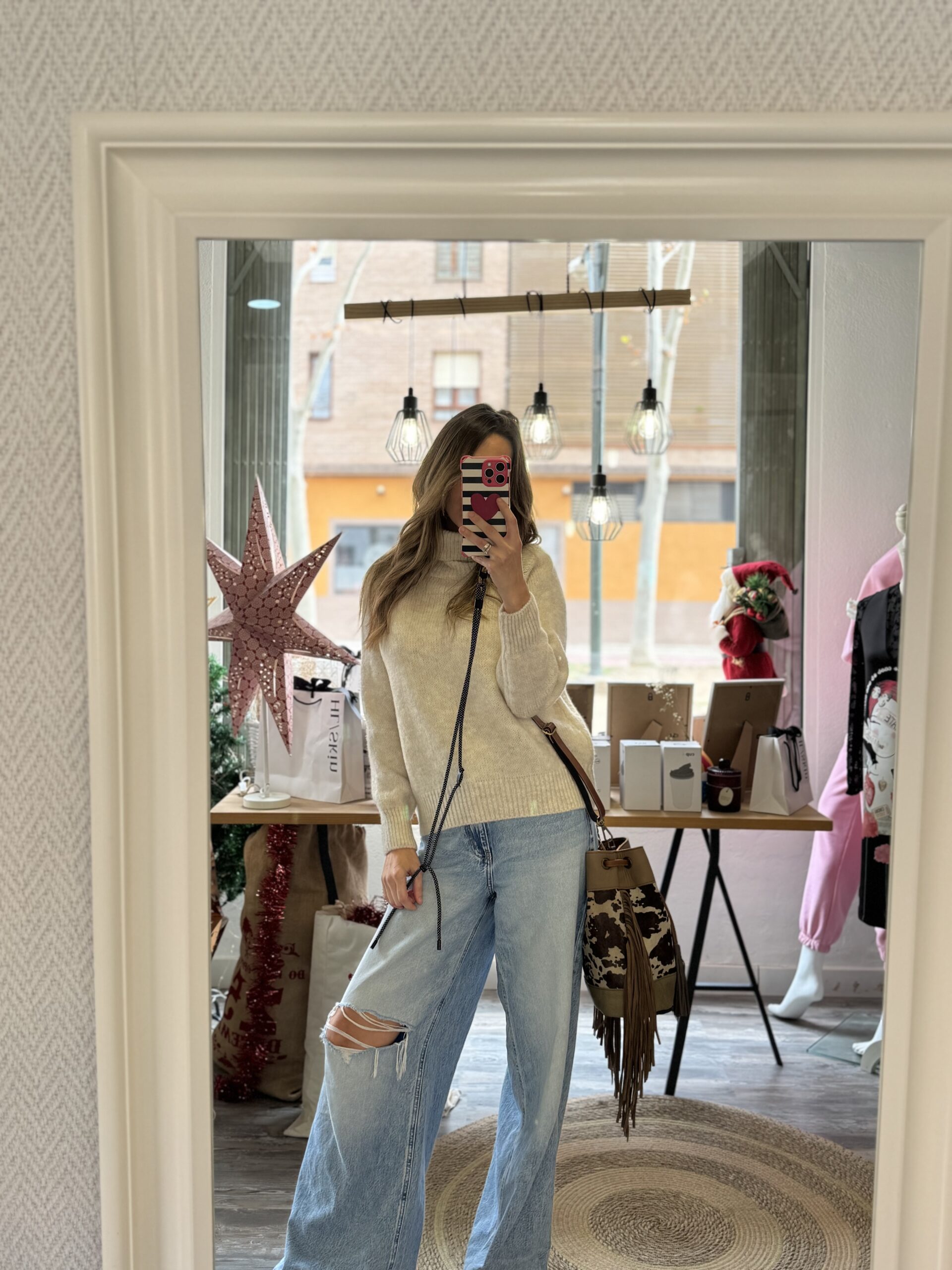 Bolso de piel en print animal con detalle de flecos .