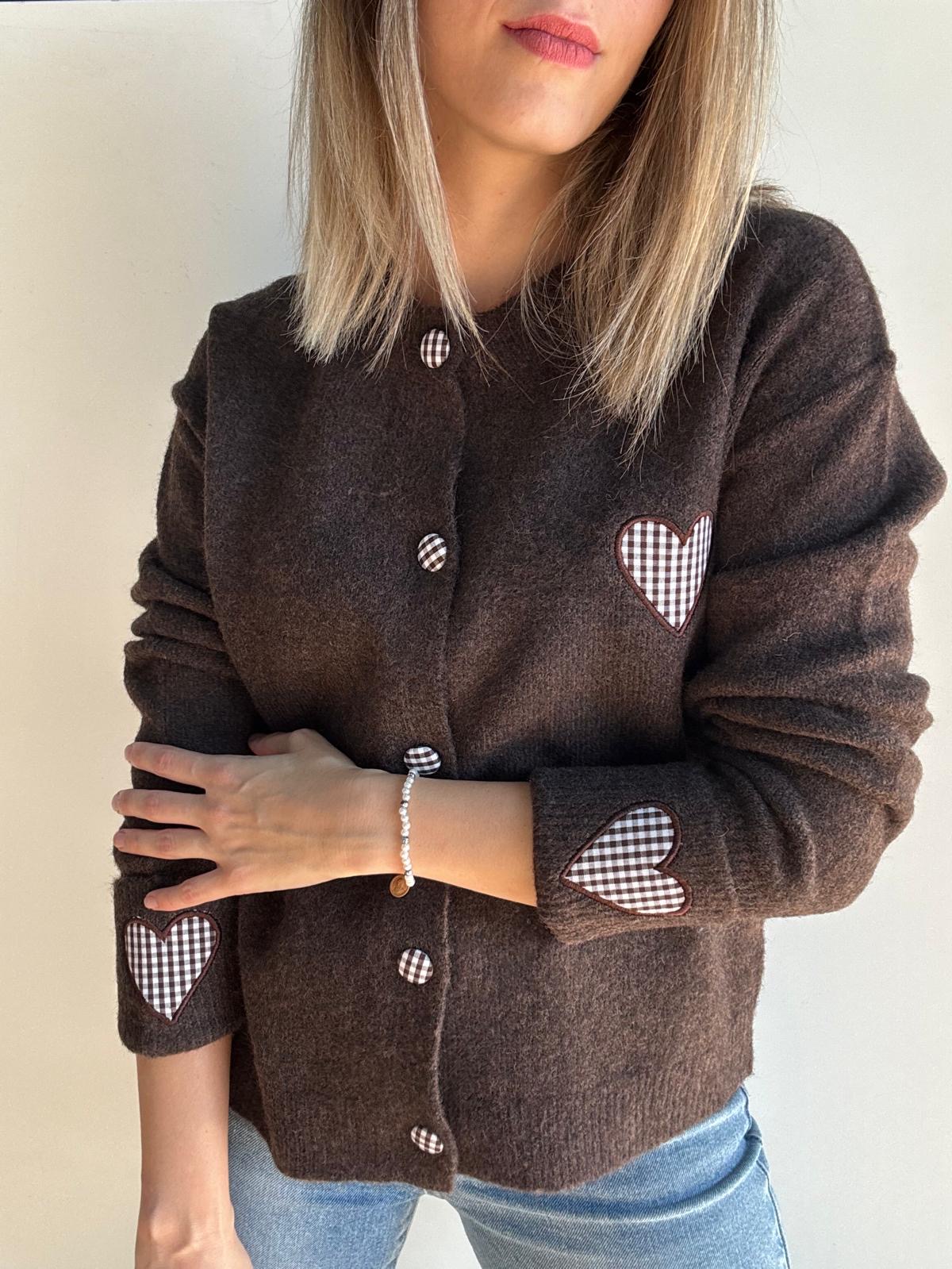 Chaqueta en el color mocca de la temporada con detalles de corazon en cuadro vichy.
