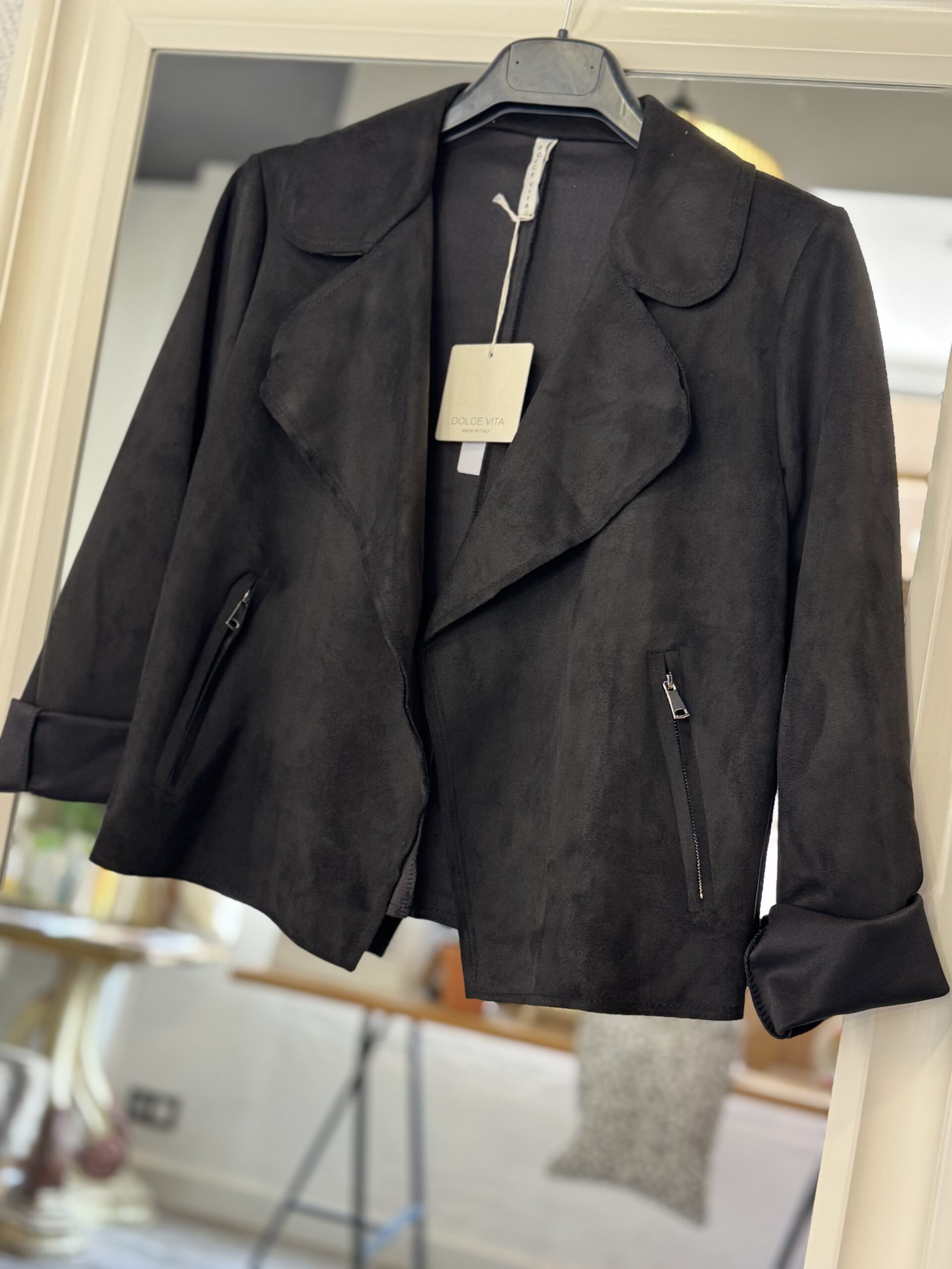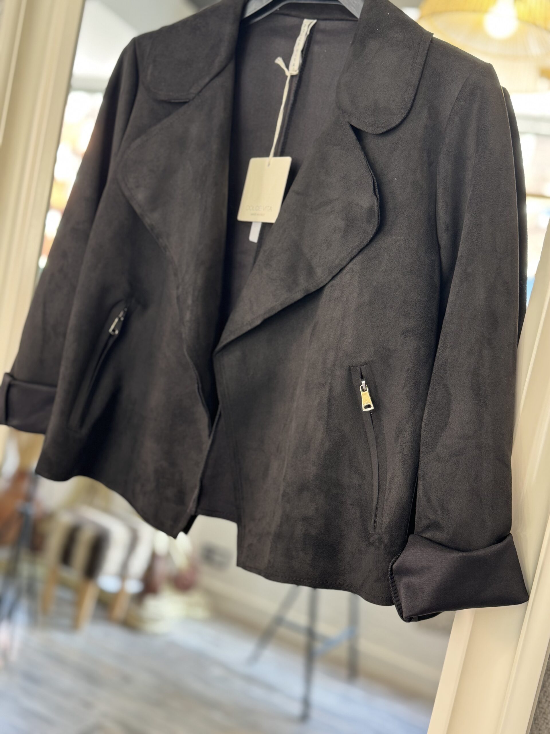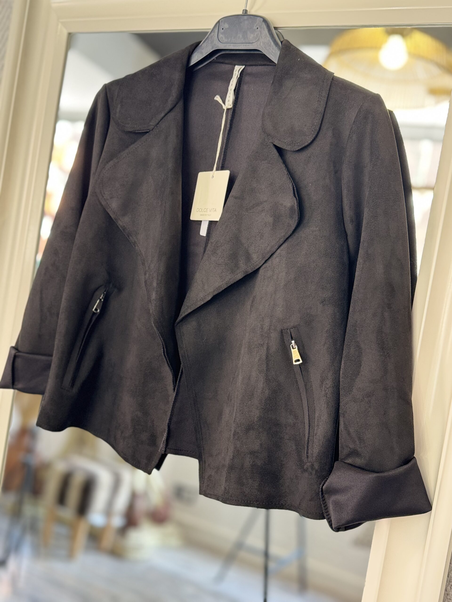 Chaqueta corte biker en tejido antelina muy cómoda y ligera, no pesa nada.