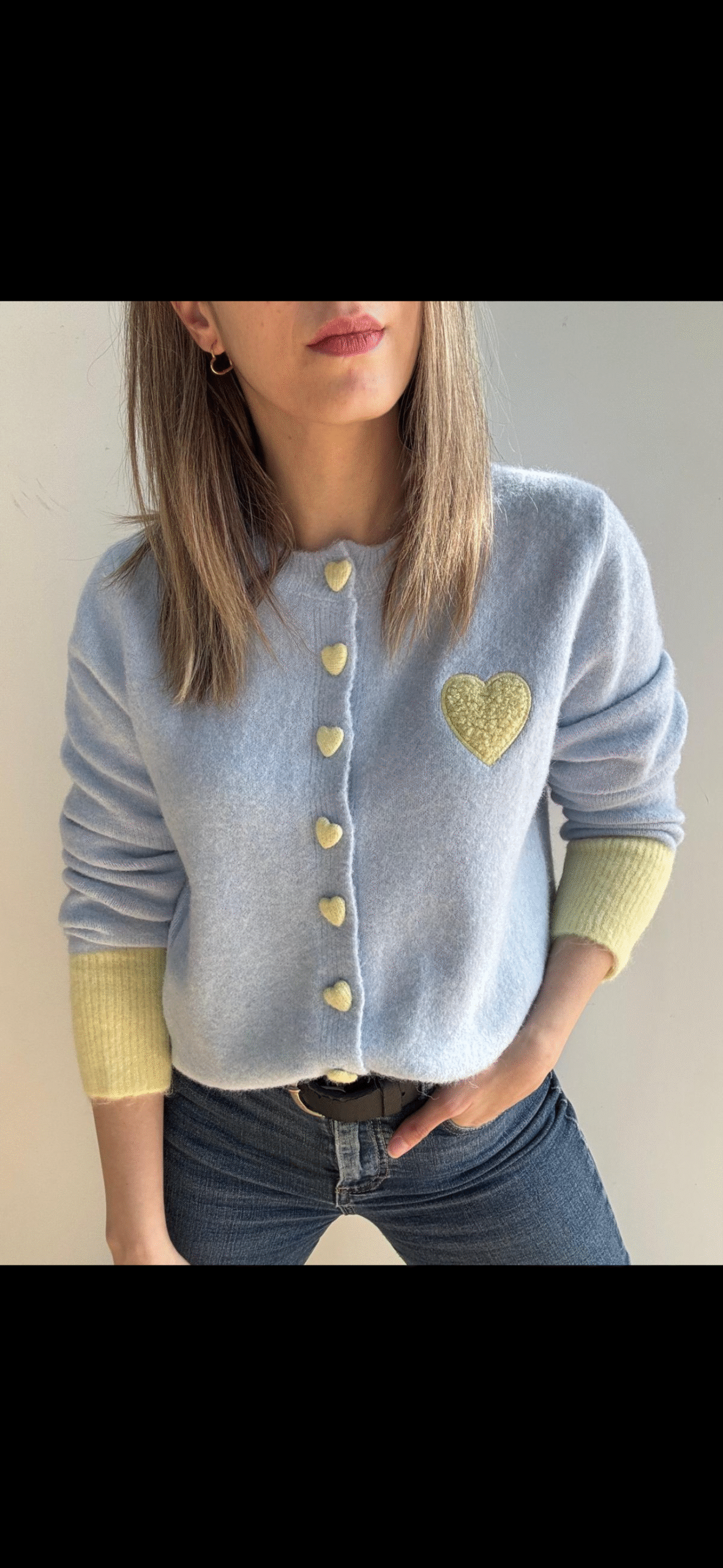 Chaqueta de manga larga con cuello redondo y detalle de corazones.