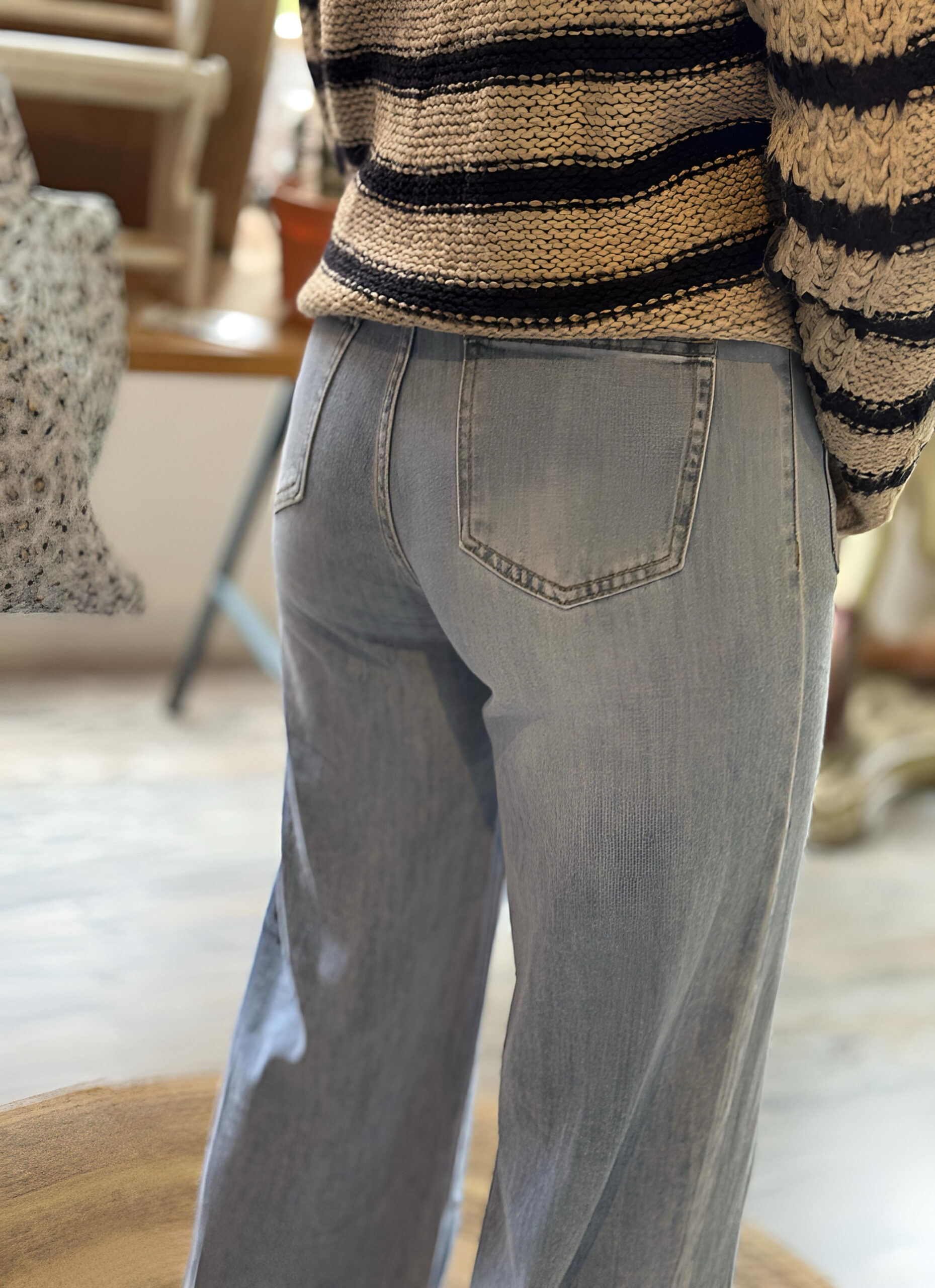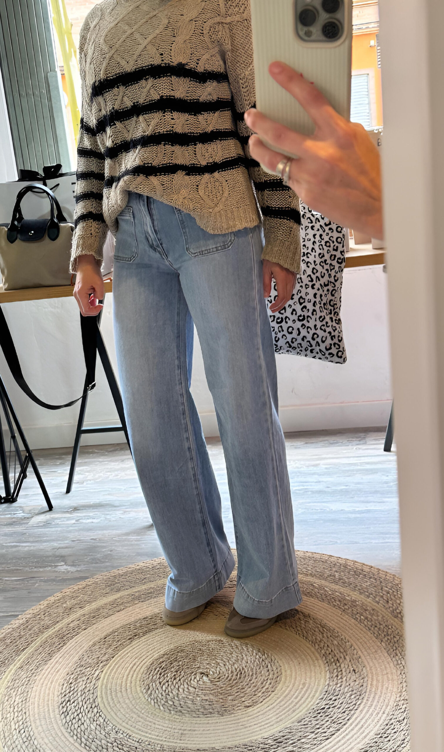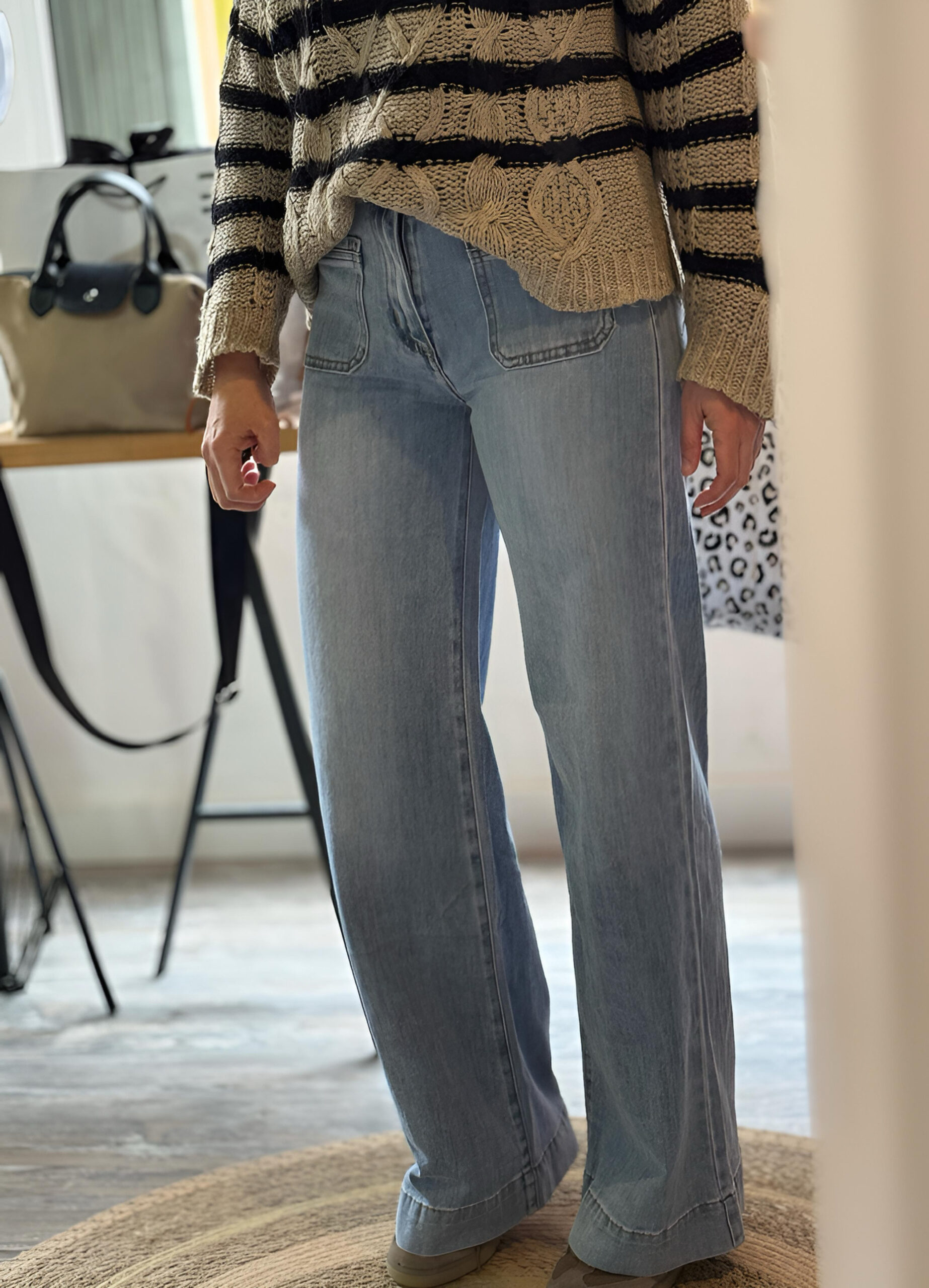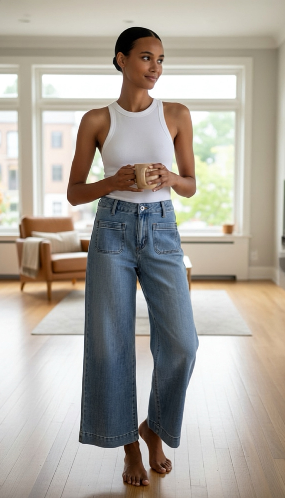 Pantalones jeans con bolsillos delanteros y pernera ancha.