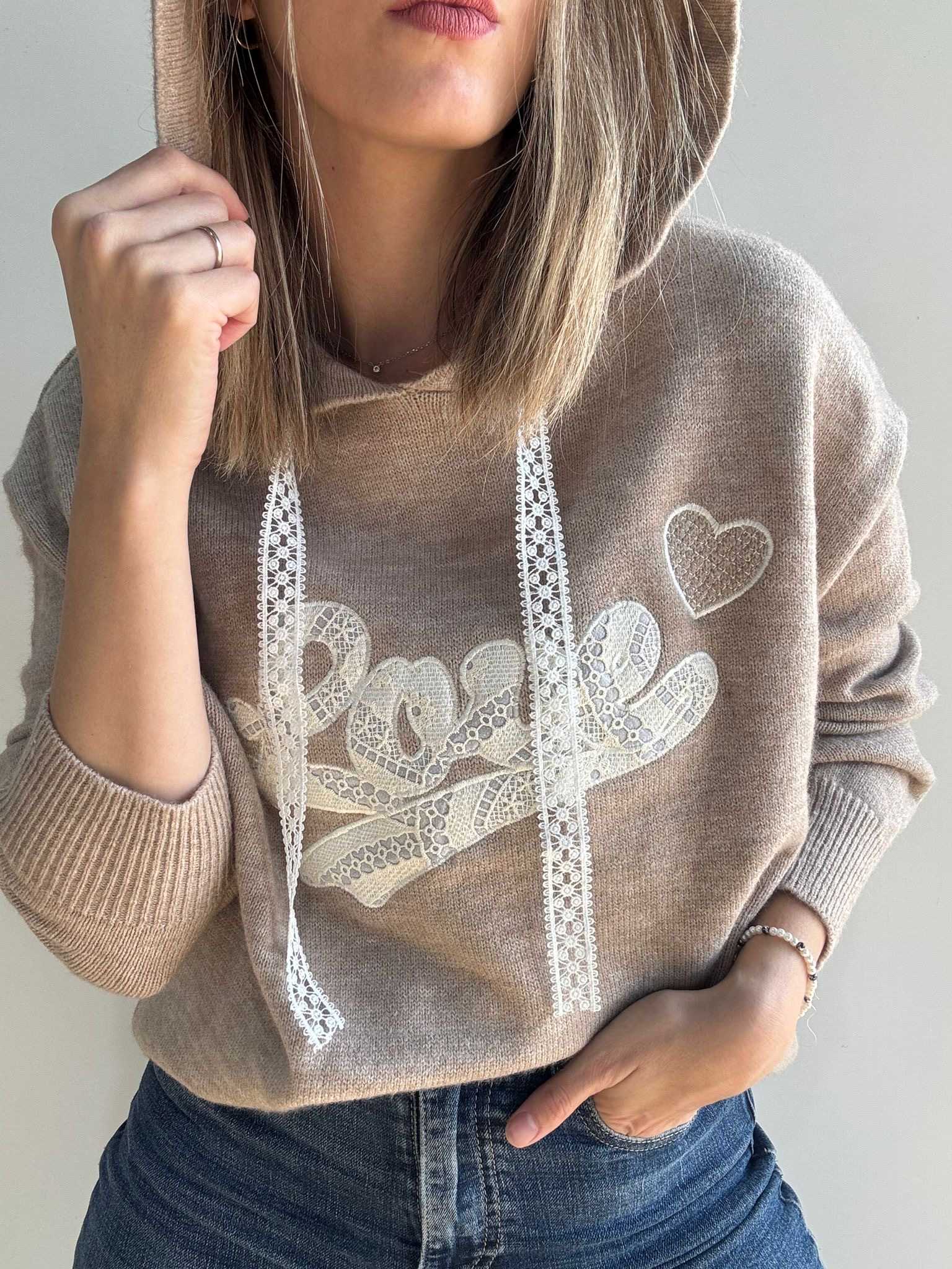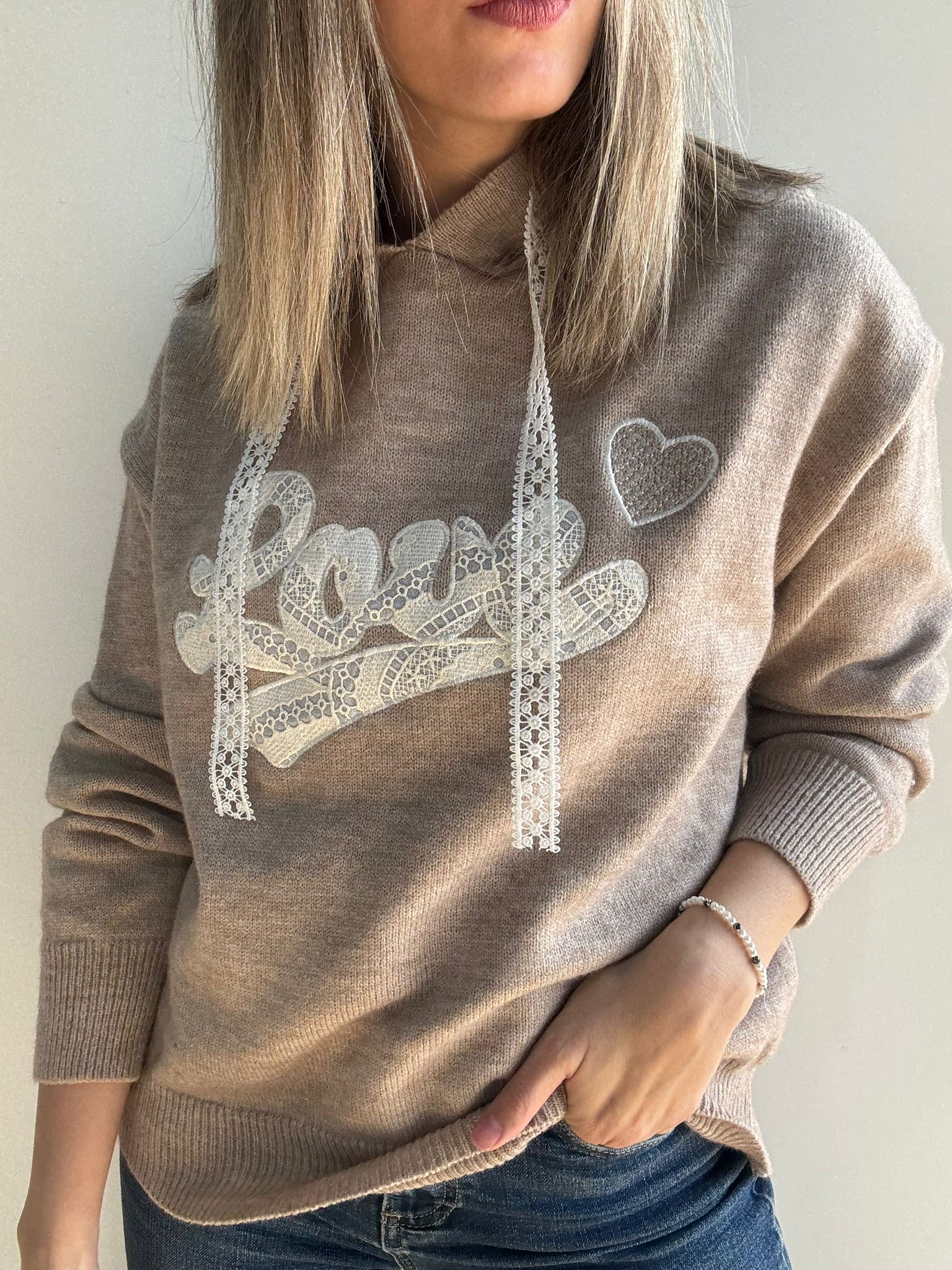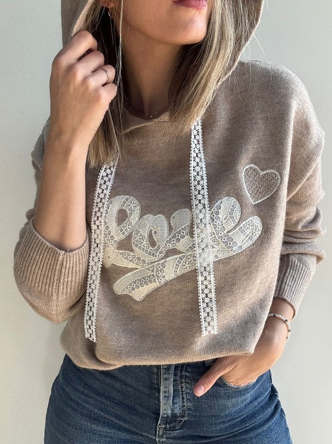 Jersey en color beige, con la palabra LOVE en el pecho.