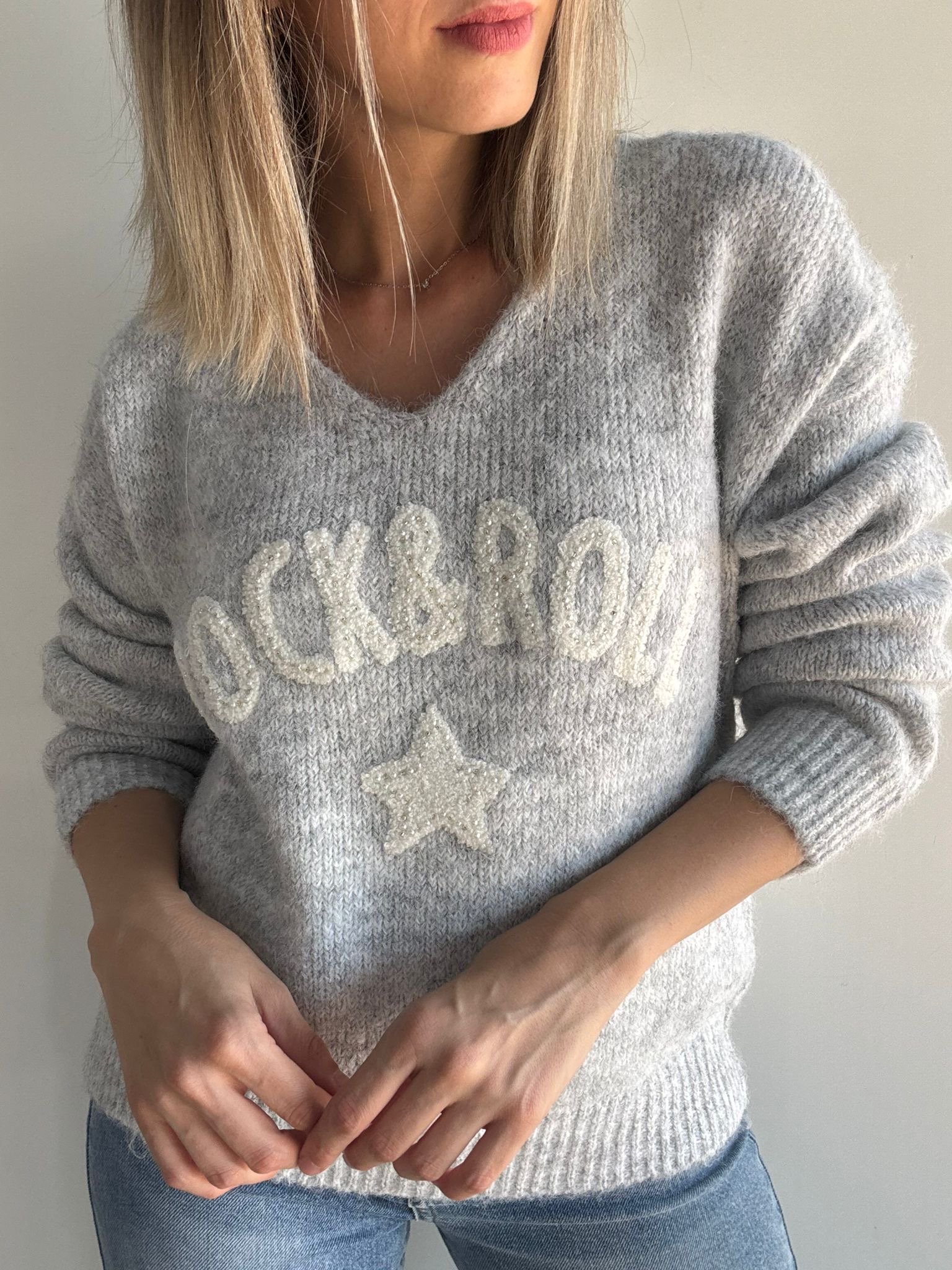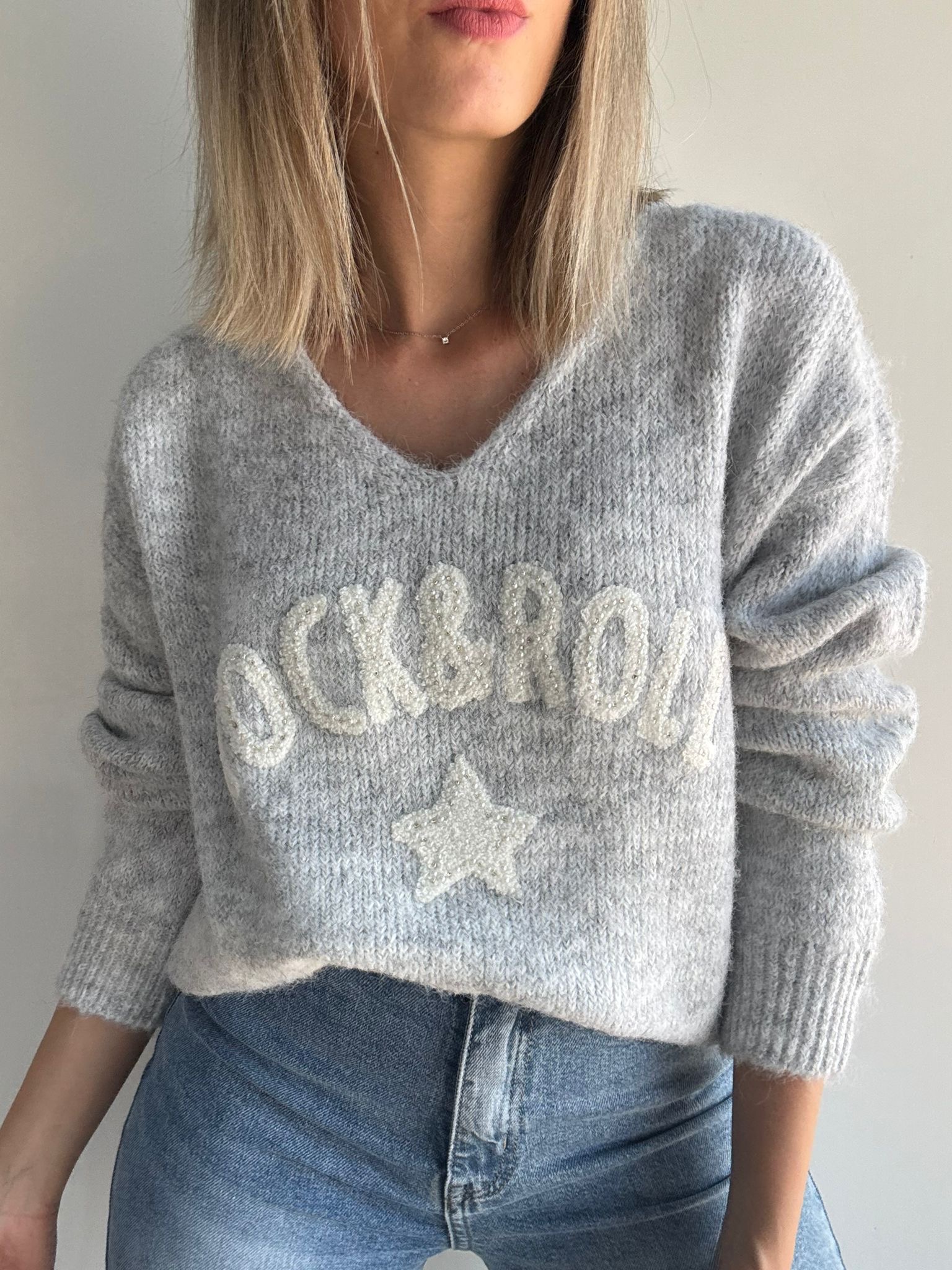Jersey de manga larga con dibujo en la parte delantera y escote pico.