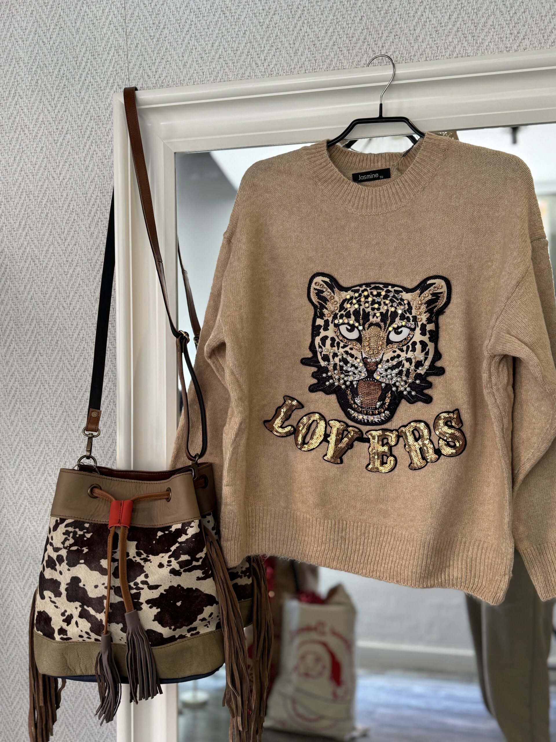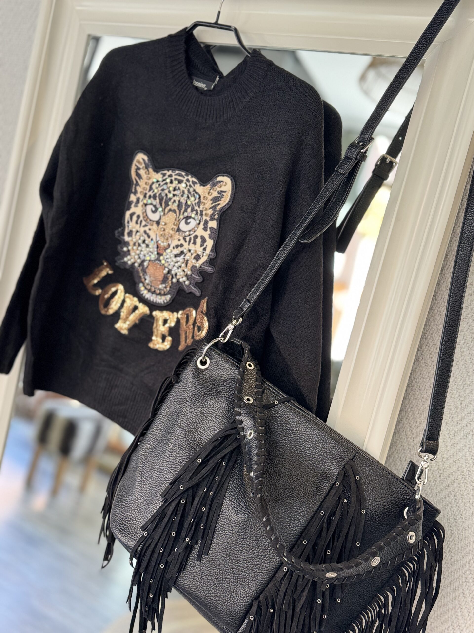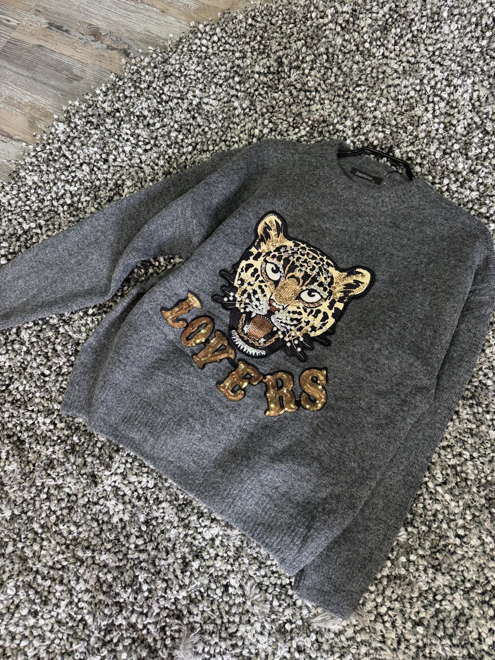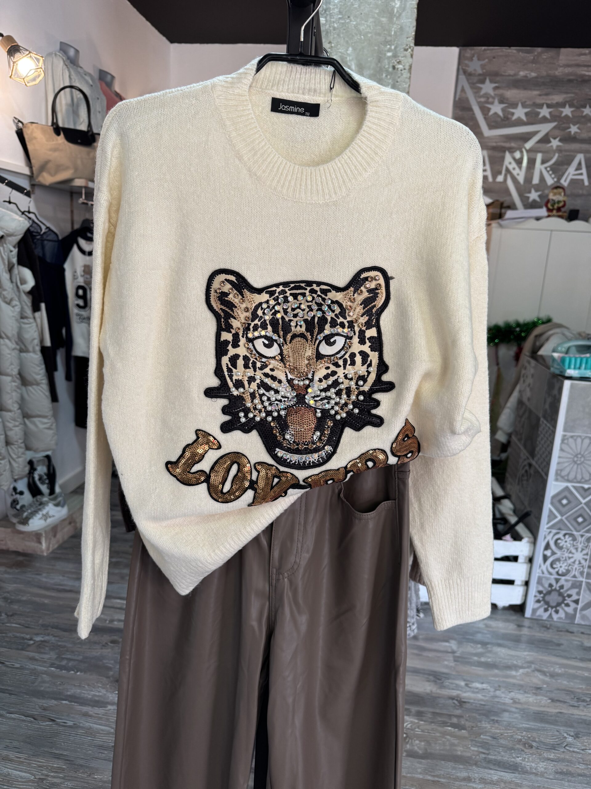 Jersey con dibujo de tigre con dedtalle de perlas.
