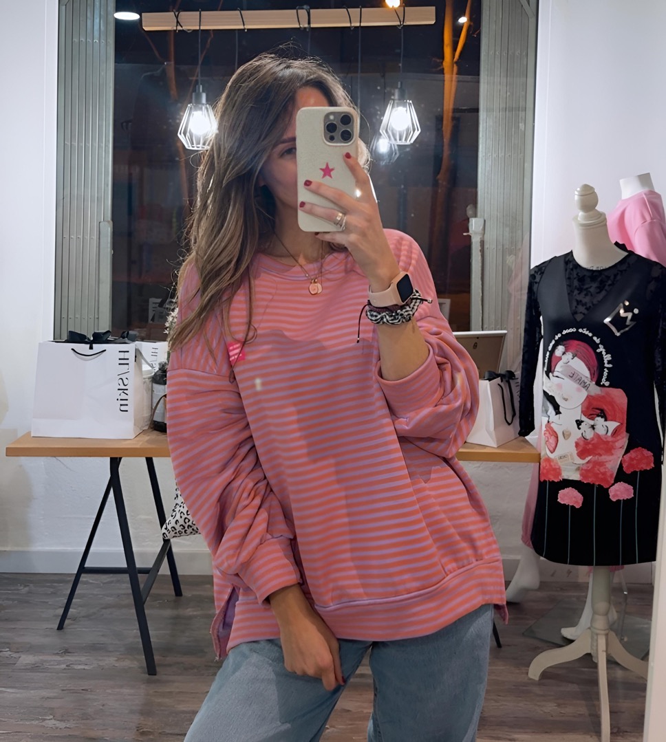 Sudadera de rayas con corte recto y aperturas laterales.